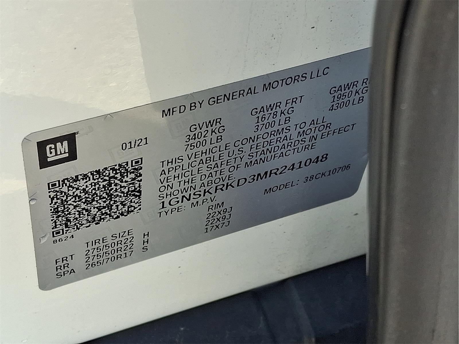 EMISSIONS, CONNECTICUT, DELAWARE, MAINE, MARYLAND, MASSACHUSETTS, NEW JERSEY, NEW YORK, OREGON, PENNSYLVANIA, RHODE ISLAND, VERMONT AND WASHINGTON STATE REQUIREMENTS, ENGINE, 5.3L ECOTEC3 V8, TRANSMISSION, 10-SPEED AUTOMATIC, GVWR, 7500 LBS. (3402 KG), REAR AXLE, 3.23 RATIO, WHEELS, 22"" X 9"" (55.9 CM X 22.9 CM) BRIGHT MACHINED HIGH-GLOSS BLACK PAINTED, SEATS, FRONT BUCKET, JET BLACK/VICTORY RED, PERFORATED LEATHER SEATING SURFACES 1ST AND 2ND ROW, AUDIO SYSTEM, CHEVROLET INFOTAINMENT 3 PLUS SYSTEM, 10.2"" DIAGONAL HD COLOR TOUCHSCREEN, LUXURY PACKAGE, MAX TRAILERING PACKAGE, DRIVER ALERT PACKAGE, ADVANCED TRAILERING PACKAGE, TRANSFER CASE, ACTIVE, 2-SPEED ELECTRONIC AUTOTRAC, COOLING SYSTEM, EXTRA CAPACITY, ADVANCED TRAILERING SYSTEM, TRAILER BRAKE CONTROLLER, INTEGRATED, HITCH GUIDANCE WITH HITCH VIEW, SUNROOF, POWER PANORAMIC, DUAL-PANE, TILT-SLIDING, MIRRORS, OUTSIDE HEATED POWER-ADJUSTABLE, POWER-FOLDING, DRIVER-SIDE AUTO-DIMMING, LICENSE PLATE FRONT MOUNTING PACKAGE, SEATS, HEATED SECOND ROW OUTBOARD SEATS, SEATS, SECOND ROW BUCKET, POWER RELEASE, SEATS, THIRD ROW 60/40 SPLIT-BENCH, POWER FOLDING, STEERING COLUMN, POWER TILT AND TELESCOPIC, STEERING WHEEL, HEATED, AUTOMATIC, MEMORY SETTINGS, RECALLS 2 ""DRIVER"" PRESETS FOR POWER DRIVER SEAT, OUTSIDE REARVIEW MIRRORS AND POWER AND TILT AND TELESCOPIC STEERING COLUMN, FRONT AND REAR PARK ASSIST, HD SURROUND VISION, REAR CROSS TRAFFIC ALERT, REAR PEDESTRIAN ALERT, LANE CHANGE ALERT WITH SIDE BLIND ZONE ALERT, LANE KEEP ASSIST