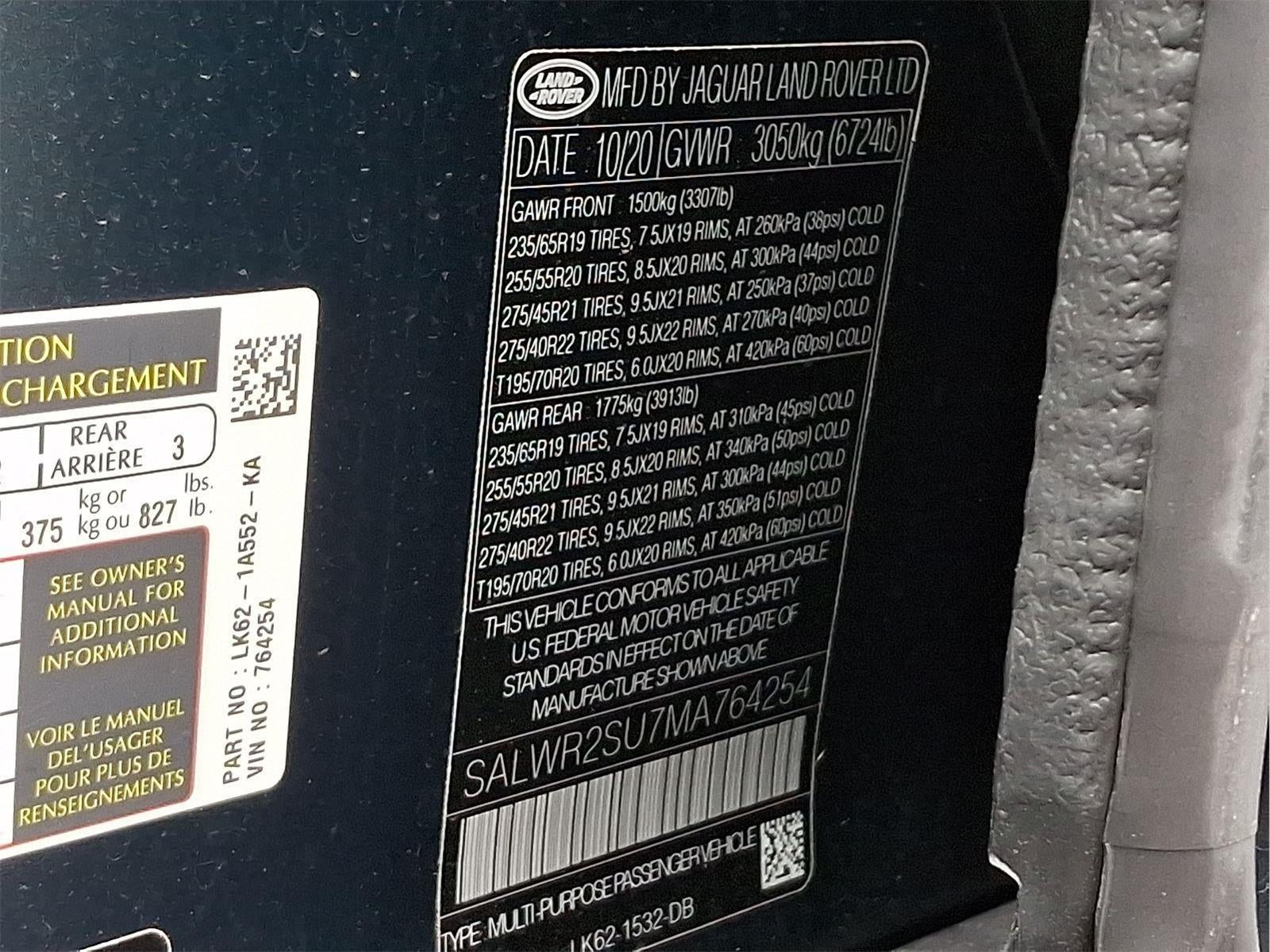 - Rear Tire Size: P275/45YR21